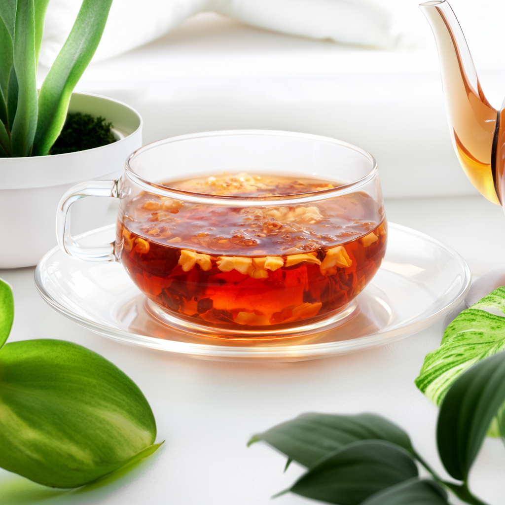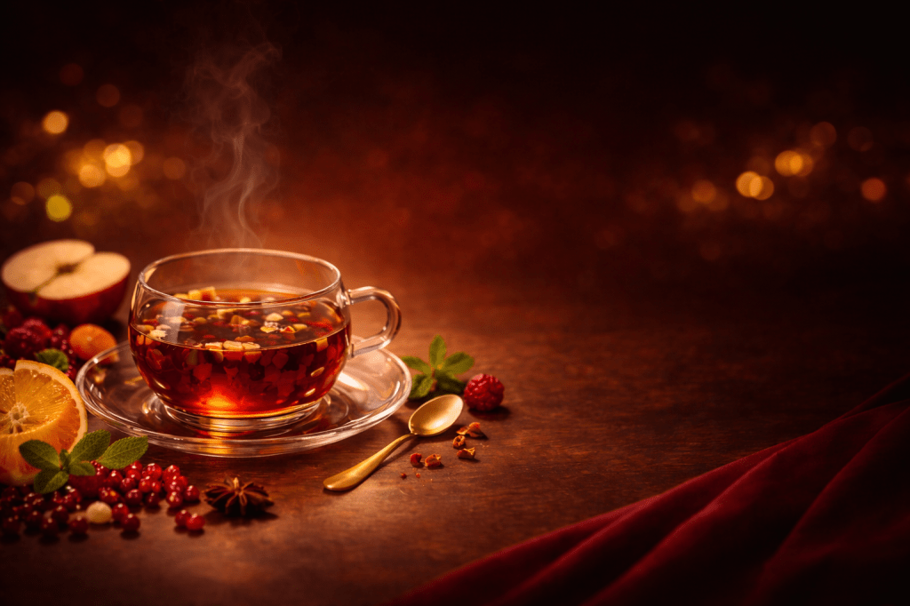 Take a moment to pause, breathe, and enjoy the gentle aroma of fruit tea.